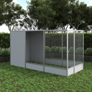 - Made standard as a full mesh aviary with solid roof, walls and skirting available as an optional upgrade using galvanised mini corrugated iron in a choice of colours