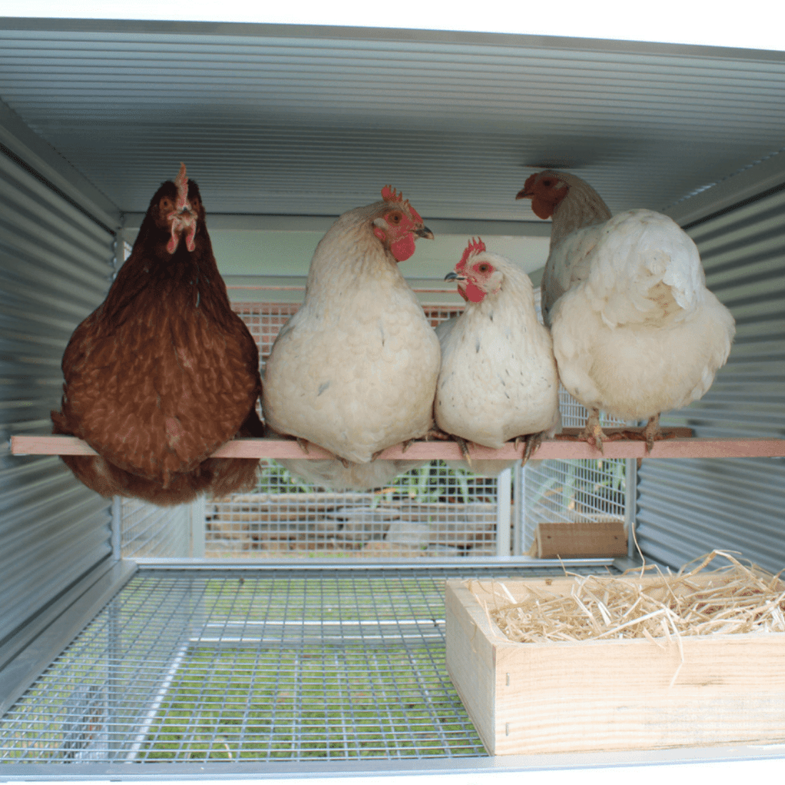 Two wooden perches are provided for night time sleeping area for the chickens. These perches are 42mm wide and 19mm thick, which is said to be the best size and shape for chickens to comfortably perch on for night time sleep.There are also heavy weight perches available for those with larger breeds. These perches are 42mm x 30mm wide.