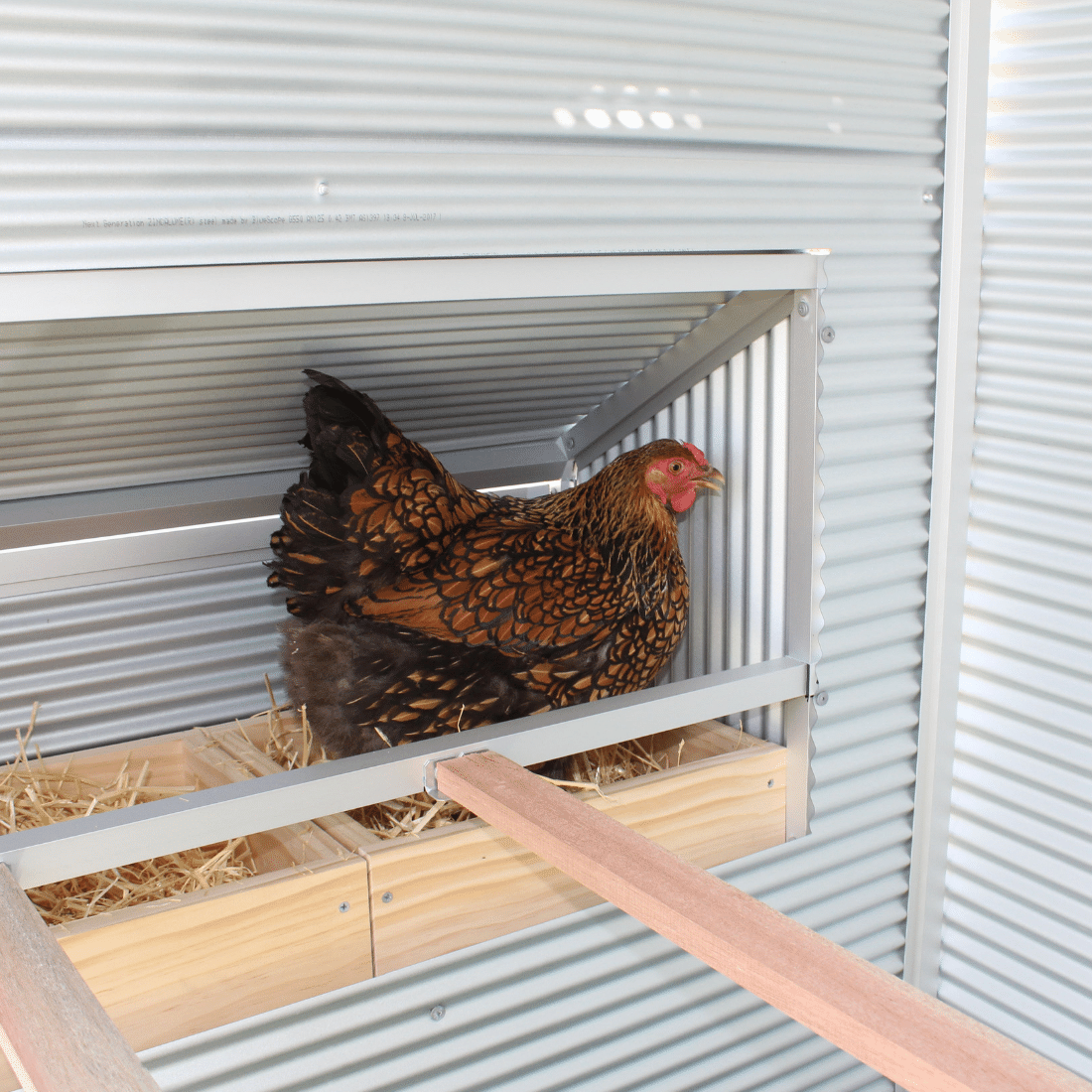Chickens need a nice cosy place to lay their eggs. A flock of around 6 chickens will all share the one laying box, each taking it in turn to lay their eggs. For most owners of backyard chickens, 1-2 nest boxes are adequate.