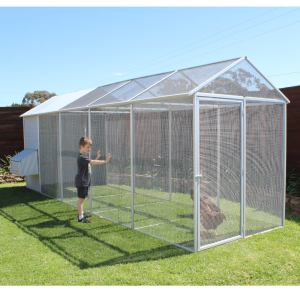 Unlike steel or timber, chicken coops made with aluminium frames will not rust, rot nor deteriorate in the weather. Your Royal Rooster coop will look just as great in many years’ time due ot the durable materials that are used in its construction. Royal Rooster’s specially designed aluminium is made with u-shaped channels in which the mesh or mini-fluted iron slots in directly. This means that there are no ugly fixings on either side of the panels to keep the materials in place. No welds or sharp edges on the mesh to be concerned about.