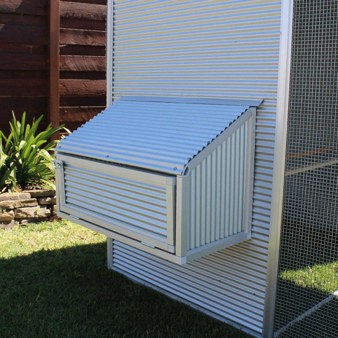 Colorbond Optional Upgrade: The Chicken Palace is also available in Colorbond for those wishing their coop to match the colour of their fence or shed or simply a stylish combination for your backyard. Colours currently available are Surfmist, Pale Eucalypt, Woodland Grey and Monument with custom Colorbond colours also available.